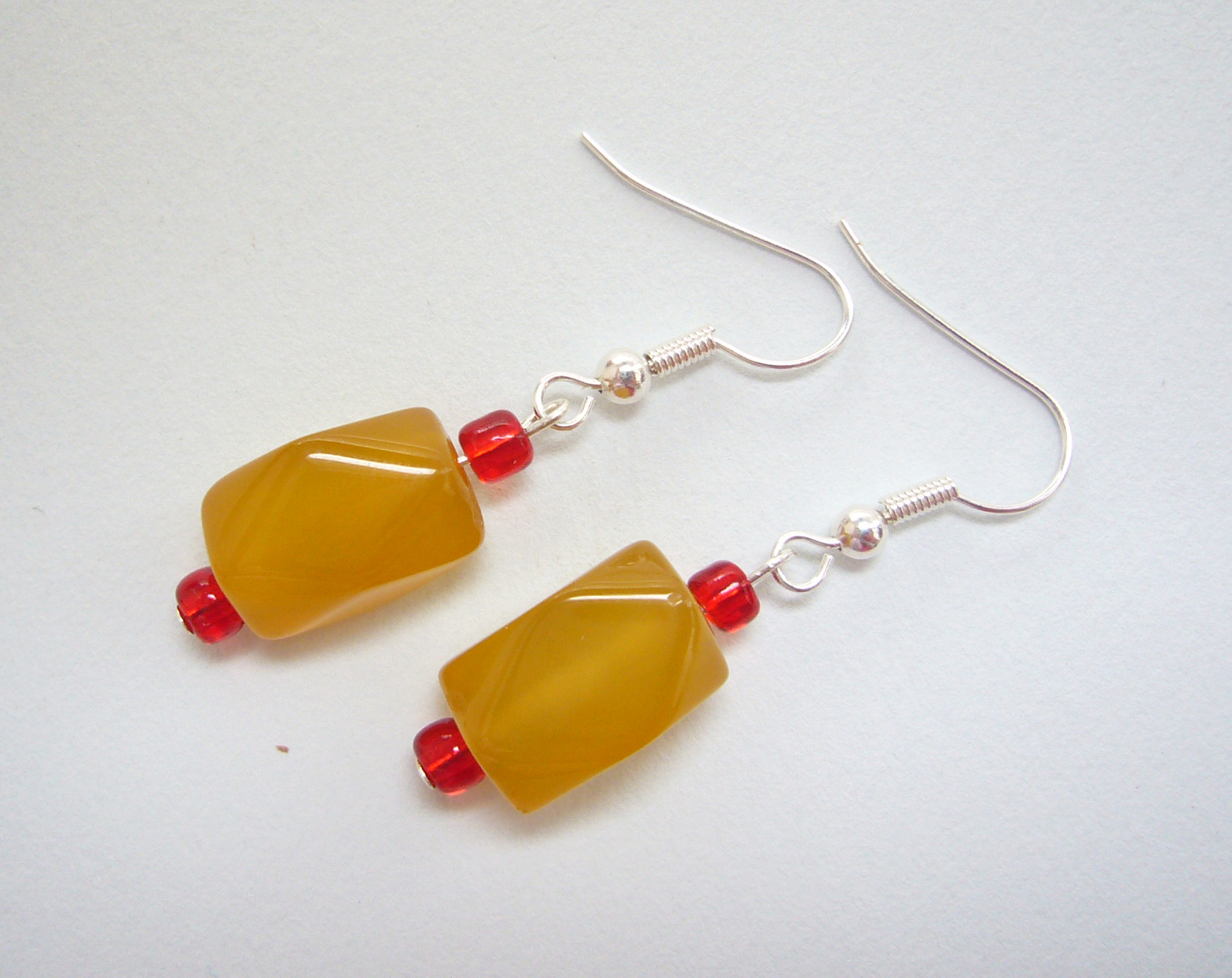jeho farba je zdôraznená červenými korálkami na vrchu a spodku náušničky.