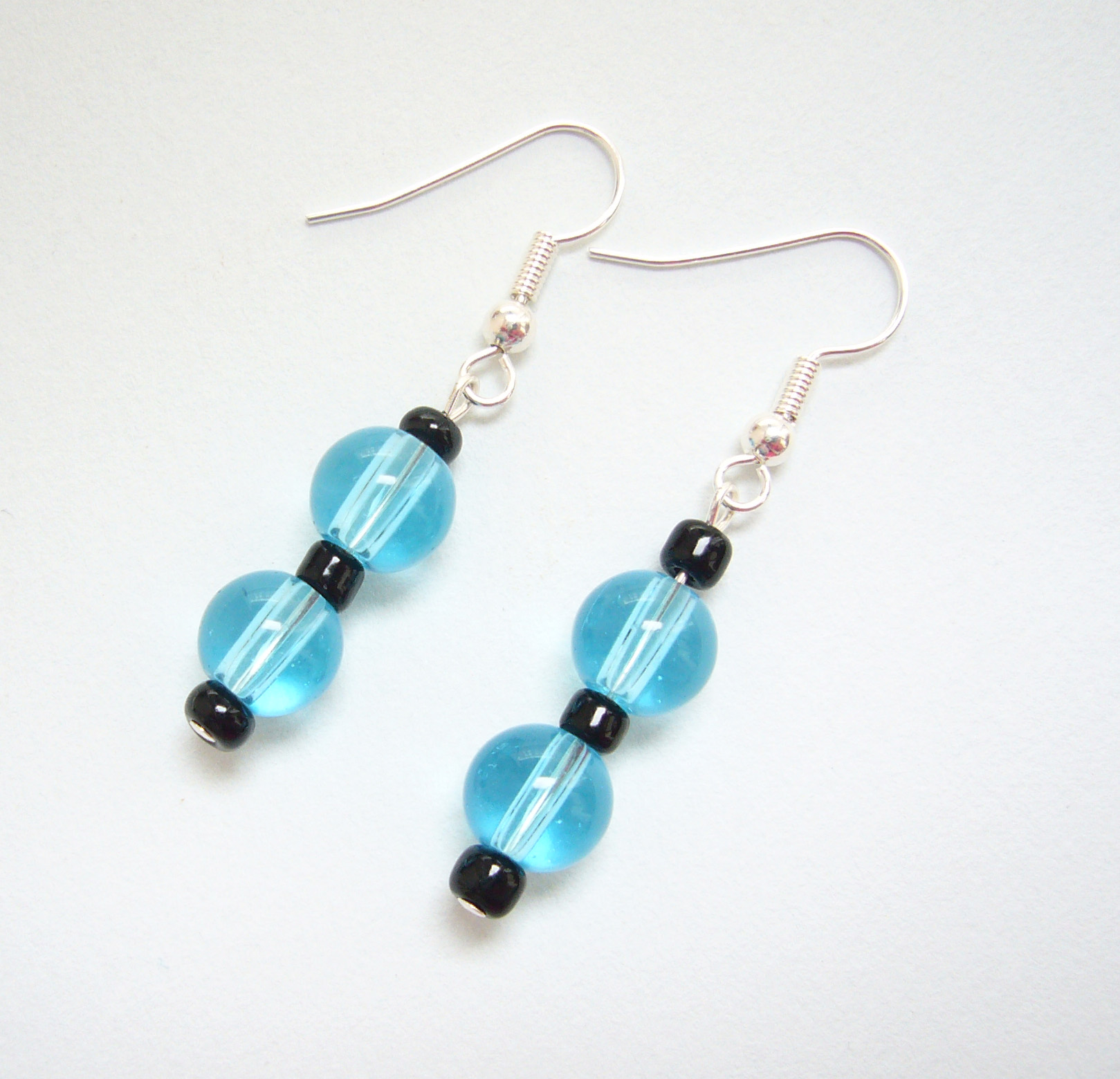 Náušnice Úradník maju asi 4 cm, korálky tvoria 2 cm. Ich jasná modrá farba pripomína